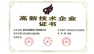 喜訊,重慶達(dá)康建筑工程有限公司順利通過重慶市科學(xué)技術(shù)局、重慶市財(cái)政局、國家稅務(wù)總局重慶市稅務(wù)局等部門的聯(lián)合評審驗(yàn)收,被正式認(rèn)定為“高新技術(shù)企業(yè)”,榮獲《高新技術(shù)企業(yè)證書》。